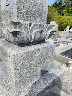 “公園墓地広島浄光台”5㎡の墓地に、9寸角蓮華台付き墓石、そして周りは玉垣で囲まれている立派お墓です。